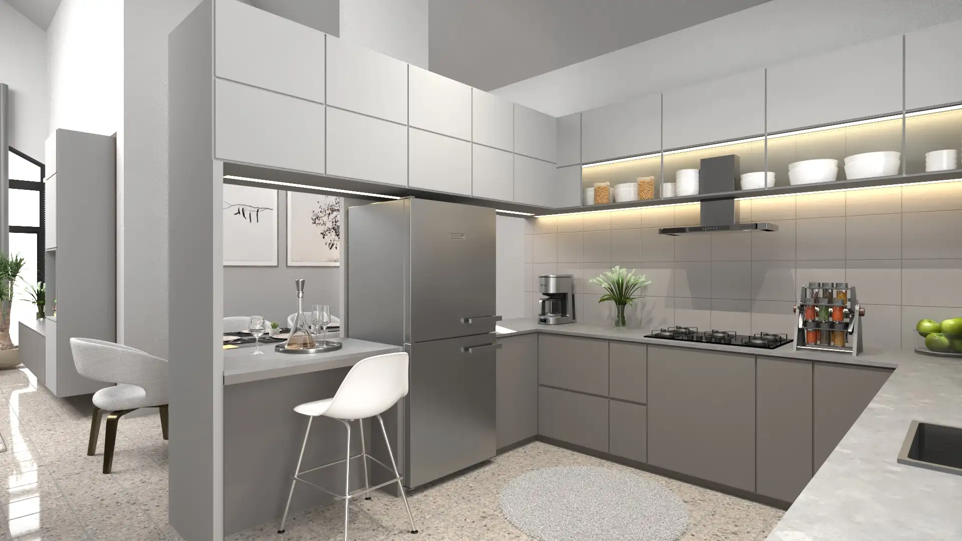 • High Ceilings and Large Windows: Promoting an airy ambiance and energy efficiency.